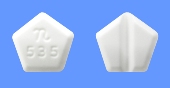 白色の五角形の錠剤、直径6.3mm、厚さ2.4mm |