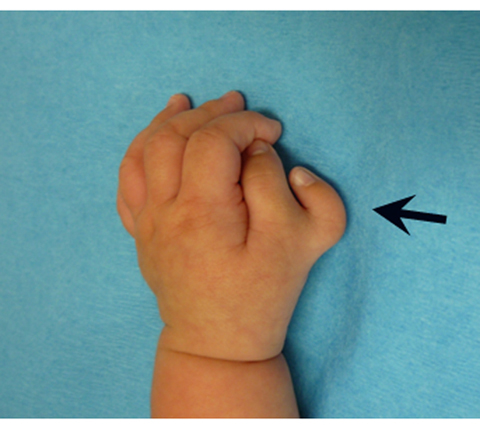 手の指の数が多い異常が多指症です。母指が過剰の場合(母指多指症)が圧倒的に多くみられます(図2