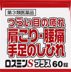 ロスミンSプラスは末梢神経修復に関与する活性型ビタミンB12のメコバラミンと葉酸、筋肉のコリの原因になる疲労物質の蓄積を防ぐビタミンB1誘導体のフルスルチアミンや天然型ビタミンE、ビタミンB6、ニコチン酸アミド、パントテン酸カルシウム、自律神経の働きを助けるガンマ-オリザノールを配合していますので、肩こり、腰痛、手足のしびれや眼精疲労などを緩和します。