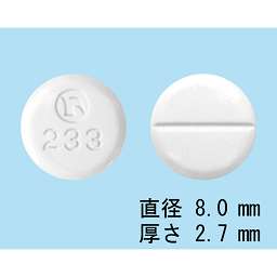 白色の錠剤、直径8.0mm、厚さ2.7mm |