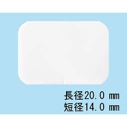 白色の切れ目入りフィルム剤(口腔内崩壊剤)、長辺20mm、短辺14mm、厚さ約80μm |