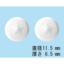 白色の錠剤(中央付近に五角形の突起)、直径11.5mm、厚さ6.5mm |