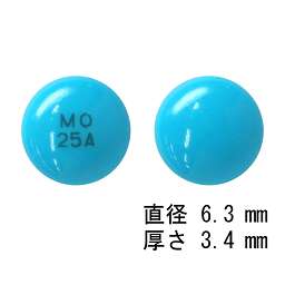 青色の錠剤、直径6.3mm、厚さ3.4mm |