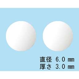白色の錠剤、直径6.0mm、厚み3.0mm |