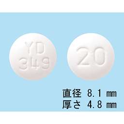 (表)パロキセチン錠20mg「YD」、20mg、パロキセチン、(裏)PAROXETINE 20mg、パロキセチン錠20mg「YD」、20mg、YD349 |