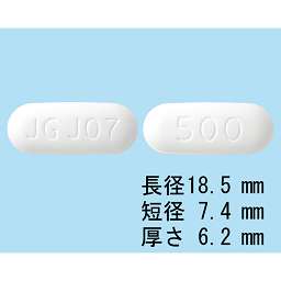 (表)バラシクロビル錠500mg「JG」、JG J07 (裏)Valaciclovir 500、バラシクロビル錠500mg「JG」、500 |
