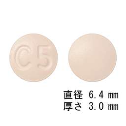 うすい赤色の錠剤、直径6.4mm、厚さ3.0mm |