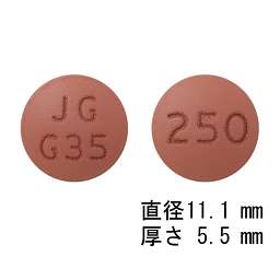 (表)ゲフィチニブ250「JG」、ゲフィチニブ、250、JG G35 (裏)Gefitinib250、ゲフィチニブ錠250mg「JG」、250 |