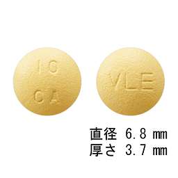 黄色の錠剤、直径6.8mm、厚さ3.7mm |