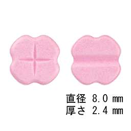 淡赤色の割線入りの錠剤、直径8.0mm、厚さ2.4mm |