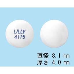 白色の錠剤、直径8.1mm、厚さ4.0mm |