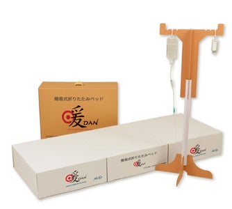 避難所生活の苦労を解決。点滴スタンド付ダンボール製簡易折りたたみベット「暖 -dan」を発売
