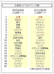 【皮膚】が圧倒的NO1に増加、【ステロイド】も上昇中、【タケプロン】が初登場 …「お薬探しの“切り口”」の最新動向