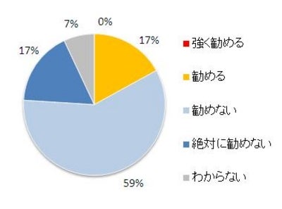 「勧めない」「絶対に勧めない」と回答した医師が76%と、「勧める」と答えた17%に比べて多い結果になりました。