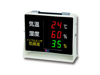 「インフルエンザ予防対策表示器」は、これらのインフルエンザ拡大の危険性を、インフルエンザの流行しやすい環境(湿度・温度)を計測し危険度を可視化し、予防対策の啓蒙にお役立ていただけます。