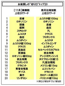 「お薬探しの“切り口”11月実績:トップ20」を発表した。