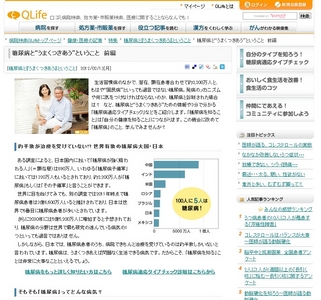 糖尿病に関するコンテンツ「糖尿病と“うまくつきあう”ということ」(http://www.qlife.jp/square/feature/diabetes_s/story25912.html)の掲載を開始した。