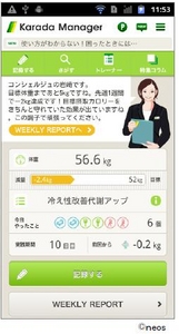 モバイル、インターネットサービスを手掛けるネオス株式会社(本社:東京都千代田区、代表取締役社長:池田 昌史 以下ネオス)は、2012年7月31日より、トータルヘルスケアサービス『Karada Manager』に新機能「らくらくダイエットモード」を実装いたしました。
