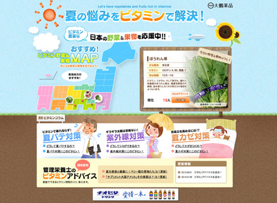 大鵬薬品工業株式会社はホームページ疾患情報サイト「夏の悩みをビタミンで解決!~ビタミン豊富な日本の野菜&果物を応援中!!~」においてビタミンアドバイスを新しく2つ記事を追加いたしました。
