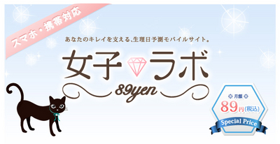 「女子ラボ(ハート)89yen」は月額89円で女性の健康と美をサポートする、生理日予測モバイルサイトです。