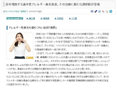 アレルギー性鼻炎の最もつらい症状「鼻閉」の治療の最新情報を紹介する特集記事が掲載開始