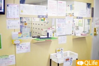 明るい待合室には、自由に持ち帰れるリーフレットや院内誌が置かれている。土日、祝日も開院しているので安心。